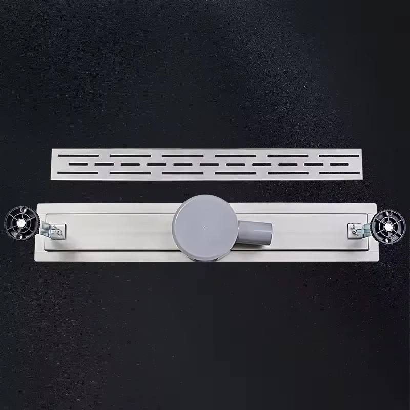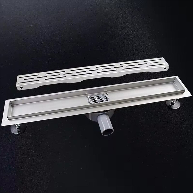 • شفة تصريف دش خطية حديثة من الفولاذ المقاوم للصدأ مقاس 10 بوصات بزاوية 360 درجة 304 مصفاة أرضية لأحواض الاستحمام للفنادق