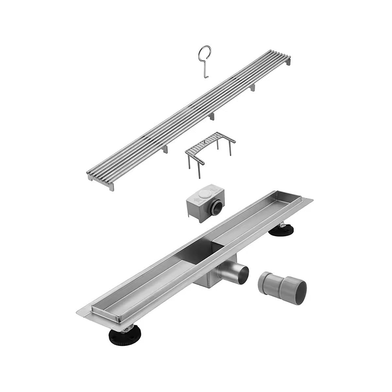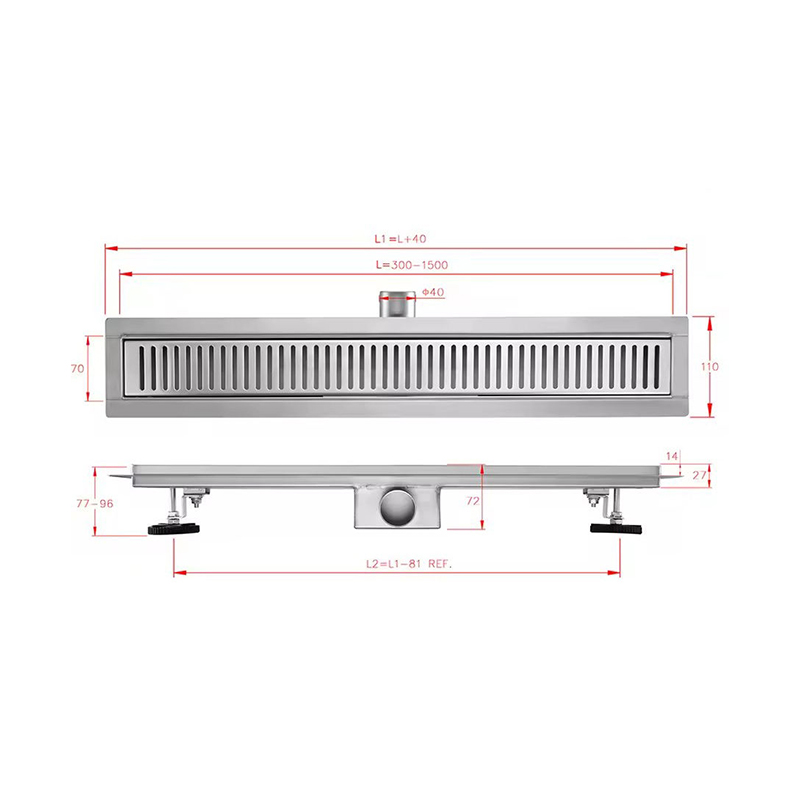 • مصفاة دش خطية من الفولاذ المقاوم للصدأ 20 بوصة 304 مع شبكة شفة مضادة للرائحة مصفاة تصريف أرضية جانبية لحوض الاستحمام وحمام الفندق