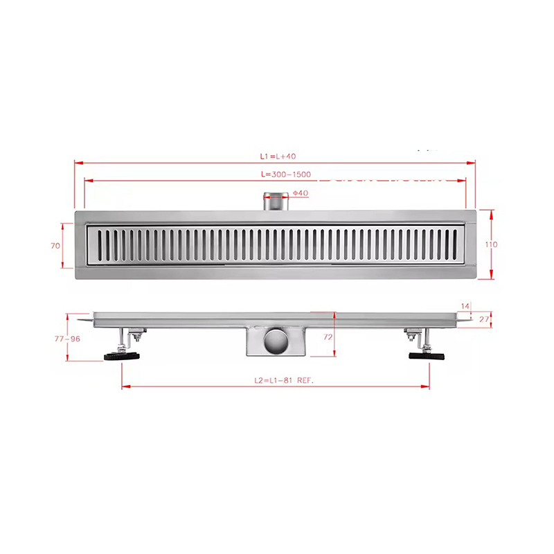 • 24 بوصة حديث قابل للتعديل 304 الفولاذ المقاوم للصدأ الخطي دش استنزاف شفة الشعر تصفية للحمام المطبخ الفندق والمنزل