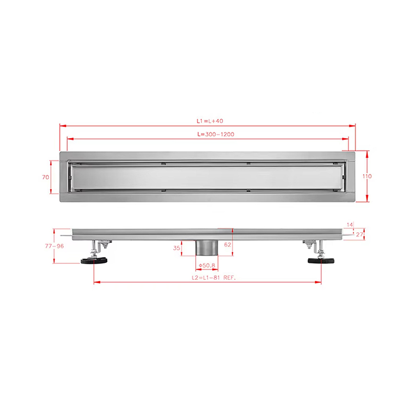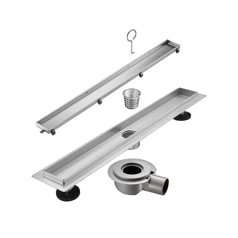 • الحديث 304 الفولاذ المقاوم للصدأ الخطي دش استنزاف شفة 20 بوصة الطابق استنزاف 360 درجة الشعر مصفاة الفلتر للمنزل فندق حوض الاستحمام